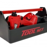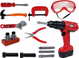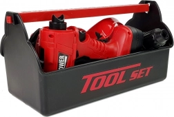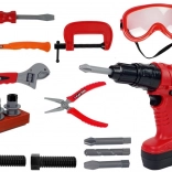 Nástroje sú vyrobené z plastu a do detailov prepracované. Vďaka krabici, v ktorej sú zabalené, budete môcť náradie po skončení práce vždy uložiť na svoje miesto. Vŕtačka znie rovnako ako skutočná a je dokonale tvarovaná, aby padla do každej malej rúčky. Na zaistenie dostatočnej ochrany sme priložili ochranné okuliare. Farebné prevedenie súpravy je červené, čierne a sivé.