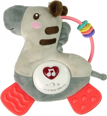 Interaktívna zebra z hebkého plyšu prináša deťom zábavu aj upokojenie. Svietiace srdiečko spúšťa melódie a priťahuje pozornosť, zatiaľ čo mäkké hryzátka na nožičkách uľavia pri prerezávaní zúbkov. Štyri farebné krúžky na chrbte fungujú ako hrkálka a rozvíjajú schopnosti úchopu a manipulácie.
