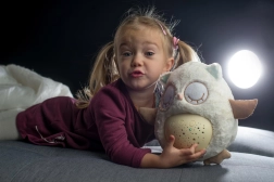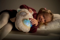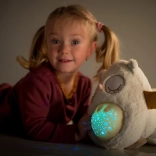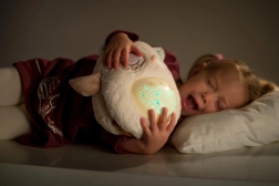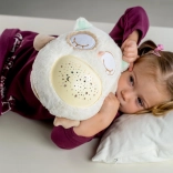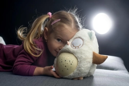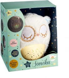 Sovička premieta nočnú oblohu v 8 farebných odtieňoch, ktoré navodia príjemnú atmosféru na zaspávanie a upokoja zmysly bábätka.