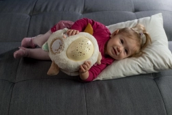 Jednoduché ovládanie zabezpečujú tlačidlá na brušku, takže všetko nastavíte aj potme. Vďaka kompaktnej veľkosti je sovička ideálna do postieľky aj na cesty. Mäkký, príjemný materiál priam vyzýva k túleniu a pomáha vytvoriť pokojný večerný rituál.