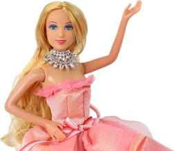 Sada obsahuje nielen bábiku, ale aj elegantnú bielu skriňu s 12 pármi topánok na výber. Bábika má k dispozícii 5 rôznych večerných šiat v bielej, fialovej, tmavoružovej, modrej a svetloružovej farbe s trblietavými prvkami. Ďalej sú súčasťou balenia 2 páry strieborných náušníc, 2 kabelky (fialová a zlatá), 3 náhrdelníky, sponka do vlasov a kefa na vlasy.