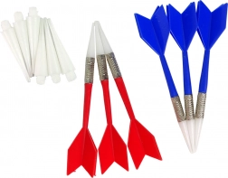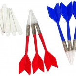 Súprava obsahuje šípky s plastovými letkami a metalickými úchytmi pre presné hádzanie.