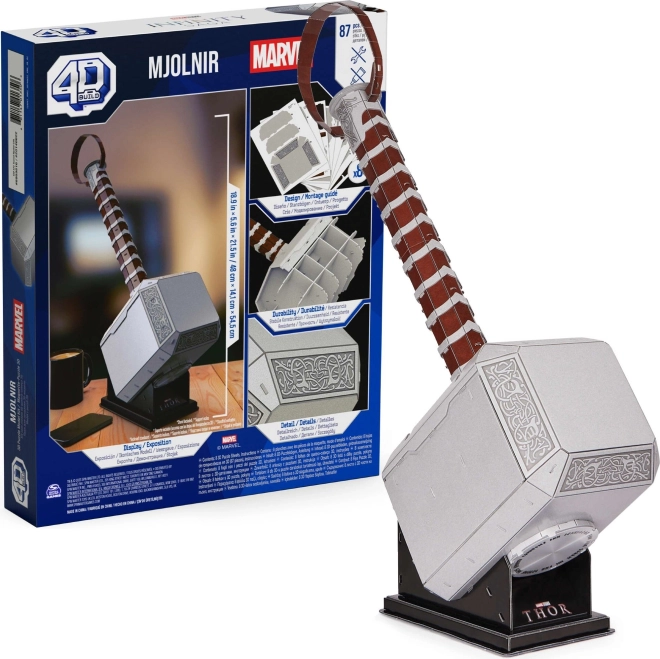 Kladivo Mjolnir obsahuje prepracované detaily a stojan na pohodlné vystavenie.