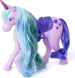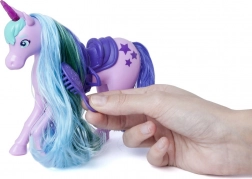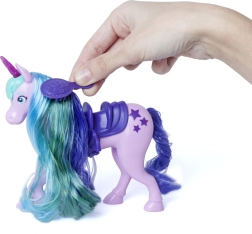 Dlhá, viacfarebná hriva jednorožca Star sa dá ľahko česať priloženou kefou a upravovať do nových účesov každý deň.