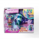 Objavte Auroru a jej jednorožca Star – štýlovú dvojicu, ktorá rozžiari každú detskú izbu. Jednorožcova dlhá, farebná hriva zo skutočných vlasov láka na česanie a tvorbu účesov, zatiaľ čo bábika KookyLoos dokáže v priebehu chvíľky zmeniť výraz tváre jediným kliknutím. Vďaka kombinovateľným doplnkom si deti užijú nekonečné možnosti stylingu a fantázie.