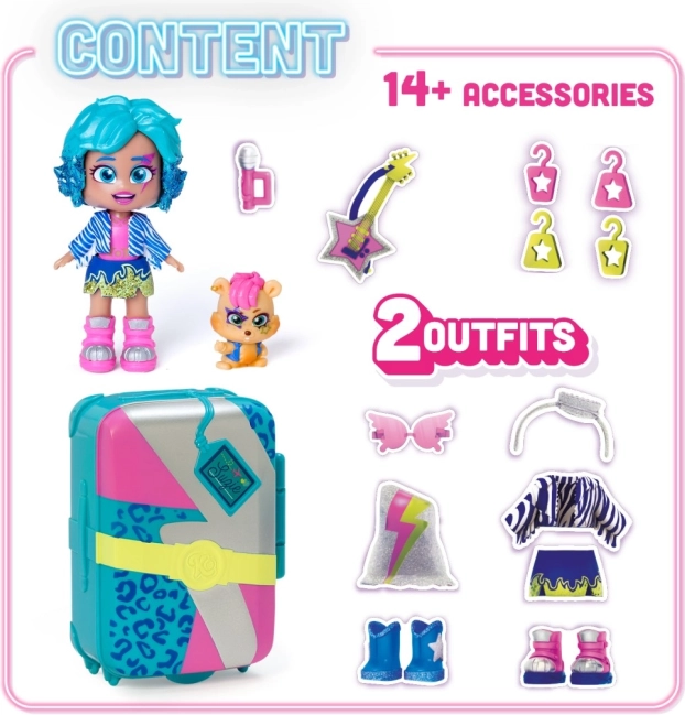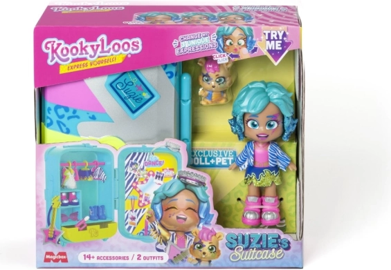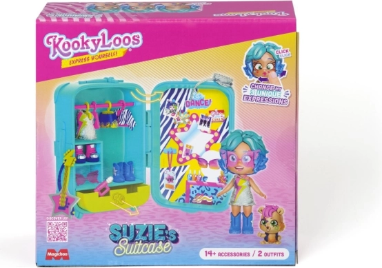 Ste pripravení vyraziť na cestu? Kufrík KookyLoos obsahuje všetko, čo potrebujete na skvelú zábavu. Čakajú na vás až 4 modely na zbieranie! Suzi je skutočná módna znalkyňa. Jej haute couture oblečenie je najnovší parížsky módny štýl! Ste pripravení na prehliadku klenotníctiev na námestí Place Vendôme a Rue Chambon? Ale vy rozhodnete, ktorý z dvoch outfitov si oblečie na najnovšiu módnu prehliadku! Má aj tri rôzne tváre, ktoré môžete zmeniť jedným kliknutím. Všetko si môžete zbaliť do kufríka a vziať so sebou! Kufrík obsahuje – exkluzívnu bábiku KookyLoos, 2× oblečenie, 1× zvieratko, viac než 13 doplnkov a ramienka.