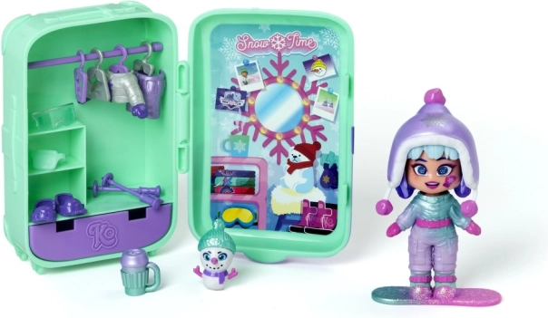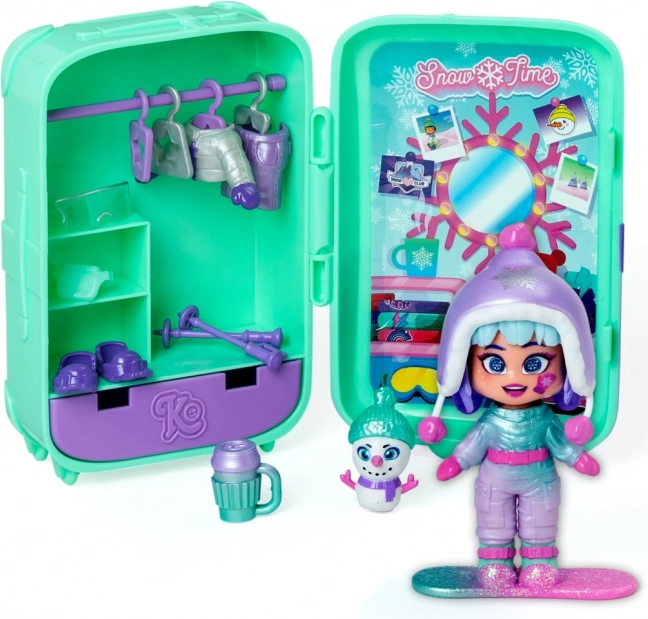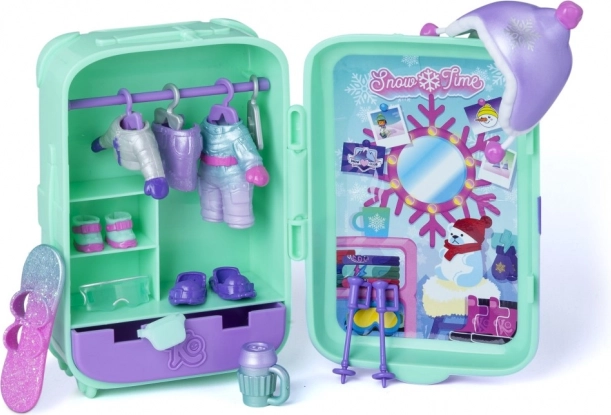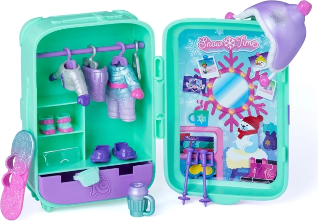 Kufrík slúži ako mini šatník aj úložný priestor, takže máte všetky outfity, zvieratko a doplnky pekne pokope. Dve zimné kombinácie oblečenia, prkno a tematické doplnky podporujú fantáziu a jemnú motoriku.