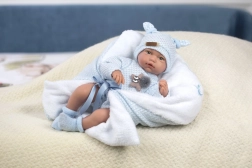 Roztomilá bábika dieťa Hugo je ideálna pre deti, ktoré sa chcú hrať a starať sa o svoje vlastné 'bábätko'. Bábika po zatlačení na hrudník vydáva autentický zvuk smejúceho sa dieťaťa. Je vybavená kĺbmi, ktoré umožňujú pohyb rúk a nôh, a vďaka polohovateľnosti môže aj sedieť.