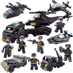 Objavte akčný svet s univerzálnou stavebnicou pre malých strážcov zákona! Sada obsahuje 343 dielikov a 6 figúrok policajtov, z ktorých postavíte auto s raketometom, krížnik, policajnú loď, raketový čln, stíhacie lietadlo a policajnú helikoptéru. Elegantné čierne prevedenie, samolepky na personalizáciu a bezpečnosť potvrdená CE a EN71 z nej robia skvelý darček pre deti od 6 rokov.