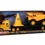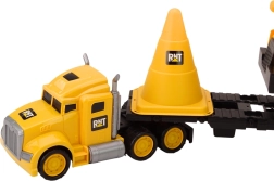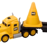 - Kompletná výbava pre stavenisko: ťahač s návesom, sklápačka, kužeľ, lopatka a hrable.
