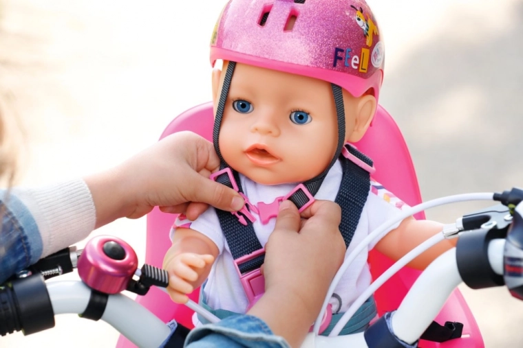 Prilba má nastaviteľné popruhy s ružovou prackou, takže ľahko sadne väčšine bábik 43 cm. Deti sa pri hraní učia zásadám bezpečnosti a rozvíjajú fantáziu i jemnú motoriku.