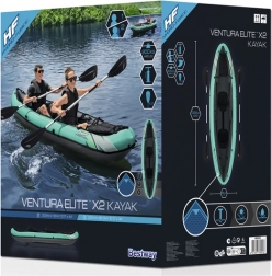 Ventura Elite X2 je robustný nafukovací kajak navrhnutý pre rekreačné pádlovanie vo dvojici. Vďaka kvalitnej kombinácii nylonu a PVC je odolný proti oderu, UV žiareniu aj slanej vode, zatiaľ čo vyberateľné bočné komory a tuhý I‑beam podlahový nosník zabezpečujú výbornú stabilitu a istotu na vode. Nastaviteľné penové sedadlá s opierkou chrbta a vreckom zvyšujú komfort aj na dlhších výletoch.