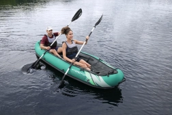 Odolný a stabilný nafukovací kajak pre dve osoby HYDRO-FORCE Ventura Elite X2 je ideálny na pokojné jazerá aj pomaly tečúce rieky. Ponúka pevný nylonový plášť odolný voči slnku, olejom aj morskej vode, dve pohodlné polstrované sedadlá s úložnými vreckami a skvelé vedenie smeru vďaka dvom vymeniteľným plutvám. V balení nájdete pár hliníkových pádiel, ručnú pumpu, transportnú tašku aj príslušenstvo pre rýchlu akciu na vode.
