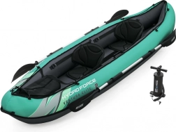 Pre presné vedenie smeru sú k dispozícii dve vymeniteľné plutvy, bočné úchyty a laná uľahčia manipuláciu a prenášanie. Kompletná sada s ručnou pumpou, dvoma 230 cm hliníkovými pádlami, odnímateľnou taškou na výbavu a transportnou taškou vám umožní vyraziť na vodu počas pár minút.