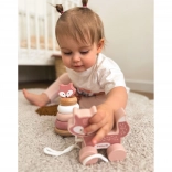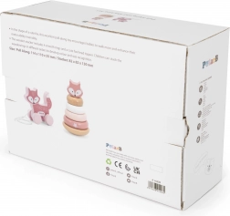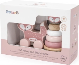 V tejto sade nájdete dve obľúbené hračky: stohovaciu vežu s líškou, ktorá učí deti ukladať krúžky podľa veľkosti a farieb, a ťahaciu líšku na šnúrke, ktorá motivuje k chôdzi a zábavnému pohybu. Kombinácia oboch podporuje prirodzené učenie formou hry.