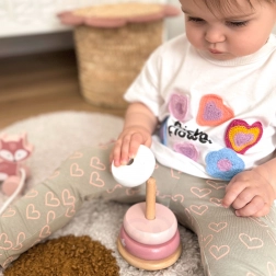 Vďaka hladkému drevu a príjemným pastelovým tónom sa hračka hodí do každého detského pokoja. Deti si rozvíjajú jemnú aj hrubú motoriku, trpezlivosť a logické myslenie, zatiaľ čo si užívajú bezpečné a kreatívne hranie.