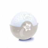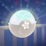 Projektor sa aktivuje zapnutím tlačidla „ON“. Zobrazuje farebné hviezdičky a prehráva 6 rôznych melódií a 3 prírodné zvuky. Okrem toho má nastaviteľnú hlasitosť zvuku, ktorú možno nastaviť na: hlasitý, tichý alebo vypnutý. Vypína sa automaticky.