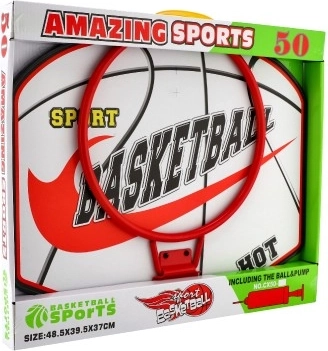 - Doska s obručou a sieťkou, lopta, pumpička
