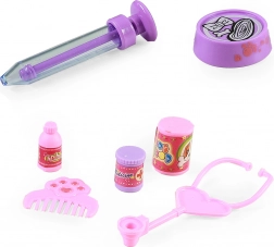 Ďalej sada obsahuje potrebné vybavenie pre hru na veterinára – hrebeň, misku na jedlo, injekciu a ďalšie nástroje. Všetky doplnky sú navrhnuté s ohľadom na bezpečnosť a zábavu.