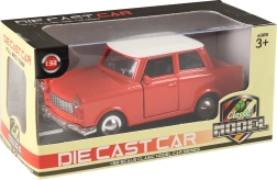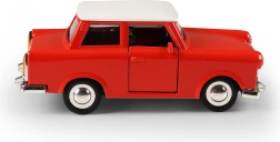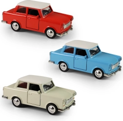 Tento detailne spracovaný model legendárneho vozidla TRABANT spája odolné kovové prevedenie s retro dizajnom, ktorý vynikne na polici aj pri hraní. Mierka 1:32 ponúka vyvážený pomer medzi veľkosťou a prepracovanými detailmi, vrátane chrómovaných prvkov a realistických línií karosérie.