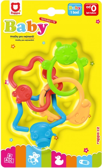 - Chrastítko, stimulácia zraku a sluchu, rozvoj jemnej motoriky