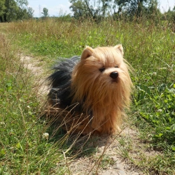 Dlhá hebká srsť, lesklé oči a verné farebné prevedenie vytvárajú pôsobivo realistický vzhľad yorkshira.