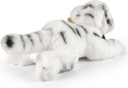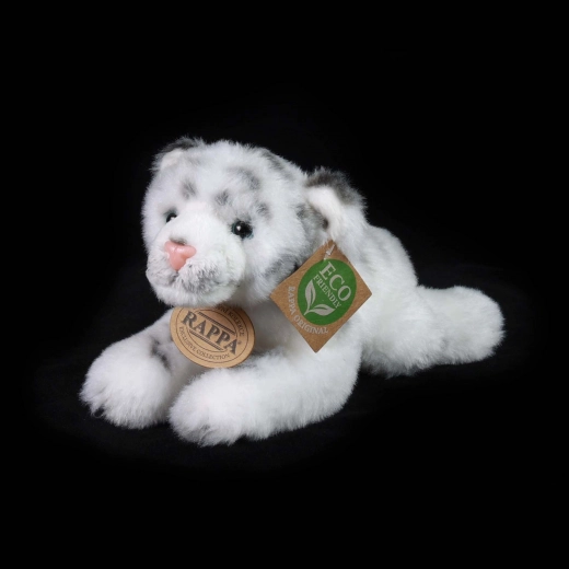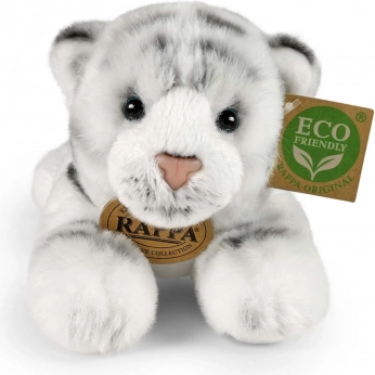 Tento ležiaci biely tiger od značky RAPPA je navrhnutý pre maximálnu hebkosť a bezpečie. Vďaka ručnému spracovaniu pôsobí veľmi realisticky a láka k maznaniu aj kreatívnej hre. Výplň je vyrobená z recyklovaných PET fliaš, je bezpečná a na dotyk na nerozoznanie od klasickej – šetrná k prírode aj deťom.