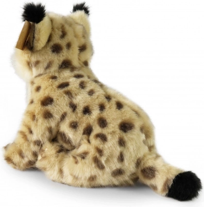 Detailný škvrnitý vzor, čierne štetôčky na ušiach a mäkkučký materiál zaručia, že si rysa deti okamžite zamilujú.