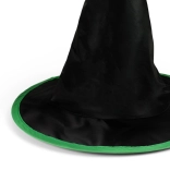 Dokonale doplní halloweensky kostým každého malého čarodeja. Vyrobené z kvalitnej čiernej šušťákoviny, klobúk je ozdobený výrazným zeleným lemom, ktorý upúta pozornosť.