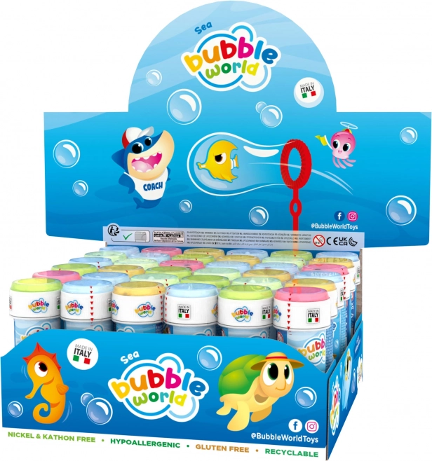 Užite si kopu zábavy s farebným bublifukom Vodný Svet s objemom 60 ml. Viečko je navyše vybavené zábavnou hrou a fúkadlo je jeho súčasťou.