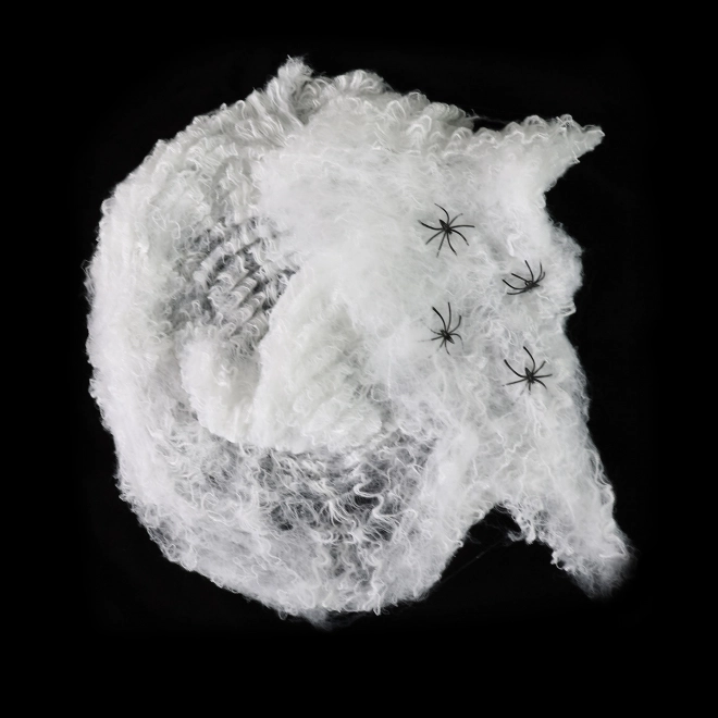 - Súčasťou sú 4 čierni plastoví pavúci o veľkosti 3 cm, ktorí dodajú dekorácii realistický vzhľad.