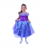 Tento fialový kostým princeznej premení každé dievčatko na hviezdu každej oslavy. Jemné trblietavé materiály, kvetinové a motýlie detaily a ľahká vrstvená sukňa podčiarkujú rozprávkový vzhľad, ktorý je pohodlný na nosenie po celý deň.