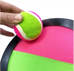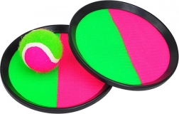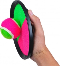 Ku hre máte k dispozícii dva taniere so suchým zipsom a loptičku. Plážovú hru si môže zahrať celá rodina na záhrade, v parku alebo si ju môžete vziať so sebou k moru na pláž. S plážovou hrou budete aktívne tráviť voľný čas na čerstvom vzduchu.