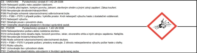 Dĺžka trvania efektu: 60 sekúnd. Pri používaní vždy dodržujte bezpečnostné pokyny, ako je ochrana pred teplom a otvoreným ohňom.