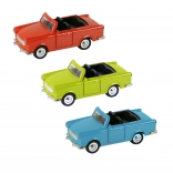 Vychutnajte si nostalgiu na štyroch kolesách s ikonickým modelom TRABANT kabriolet 1:32. Kovové (die‑cast) prevedenie, autentické detaily karosérie a interiéru a plynulá jazda na spätný zotrvačník z neho robia skvelý darček pre deti od 3 rokov aj štýlový zberateľský kúsok.