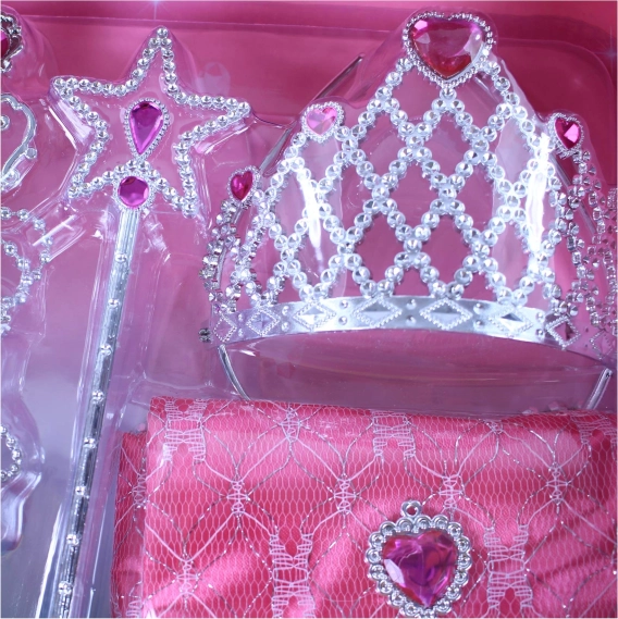 Rozžiarte detskú fantáziu s kúzelnou princeznovskou sadou, ktorá premení každé dievčatko na skutočnú princeznú. Súčasťou balenia je korunka, náušnice, náhrdelník, kúzelná palička a kabelka v krásnej ružovej farbe – ideálna na prezliekanie, karneval aj hry doma.