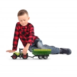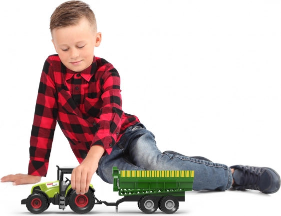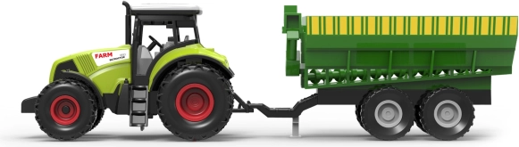 Tento realistický traktor s vlečkou je ideálny na detské hry na farme. Vďaka setrvačníku sa ľahko rozbehne, tlačidlá aktivujú reálne zvuky a svetelné efekty, ktoré pridávajú na autentickosti. Vlečku možno jednoducho odpojiť a používať traktor samostatne.