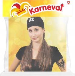 Vstúpte do role neohrozeného piráta počas pár sekúnd. Táto pirátska parochňa so šatkou sa vyznačuje výrazným pirate lookom so symbolom lebky a skrížených hnátov, ktorý okamžite zaujme. Je skvelá na karneval, Halloween, maškarný bál aj tematické večierky.