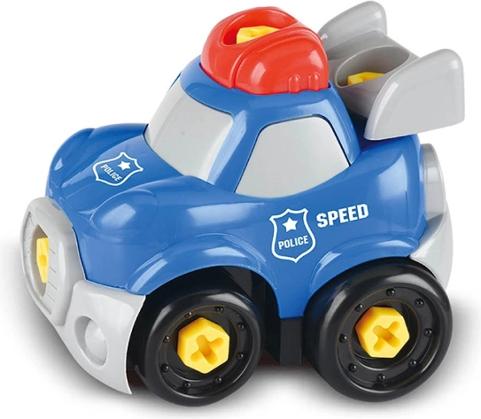 Toto skrutkovacie policajné auto ponúka deťom pútavú kombináciu stavanía a hrania rolí. Vďaka jednoduchej konštrukcii a priloženému náradiu si deti môžu auto rozobrať na jednotlivé diely a opäť zložiť – zlepšujú tak koordináciu oko–ruka a učia sa základom technického myslenia.