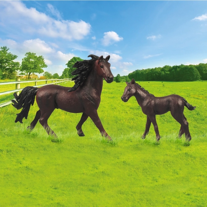Súprava koní s ohradou v tmavohnedej farbe s čiernou hrivou je ideálna pre milovníkov koní. Skvelý doplnok do kolekcie Moja malá farma.