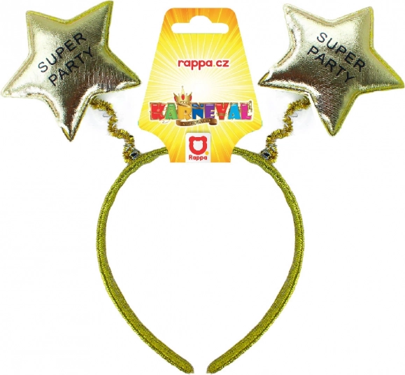 Karnevalová čelenka s nápisom SUPER PÁRTY je štýlový doplnok pre každú oslavu, ktorý pritiahne pozornosť vďaka svojim zlatým hviezdičkám.