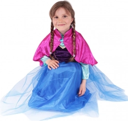 Tento štýlový kostým premení každé dievčatko na odvážnu princeznú pripravenú na zimné dobrodružstvá. Bohaté čierno‑modré farby so zlatými detailmi a ružový saténový plášť s ozdobnou sponou vytvárajú pôsobivý vzhľad na karneval, narodeninovú oslavu aj domáce prezliekanie.