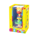 Táto zábavná žirafa prináša vizuálne aj zvukové podnety, ktoré deti motivujú k objavovaniu. Stačí stlačiť hlavu a guličky sa začnú točiť, skákať a príjemne hrkať – ideálne na tréning sústredenia a prvých zručností.