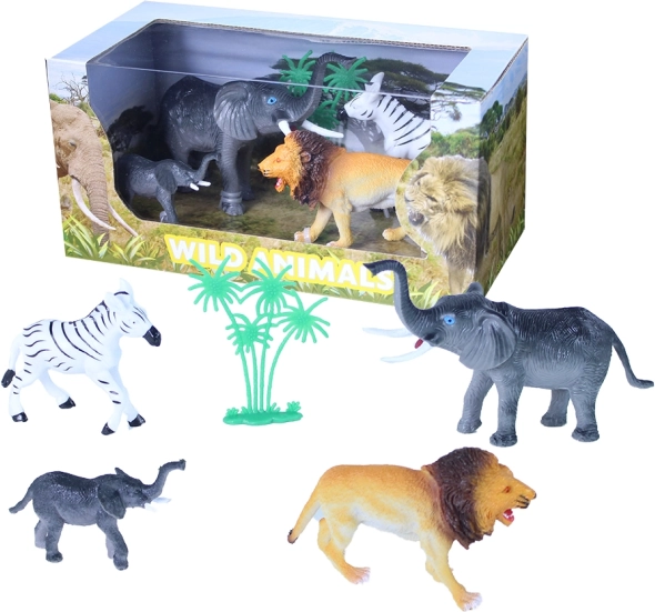 Rozšírte svoju domácu ZOO o túto senzačnú sadu divokých zvierat v krabici. Balenie obsahuje slona, mláďa slona, zebru, leva a palmu – ideálne na kreatívne hranie a učenie sa o prírode.