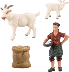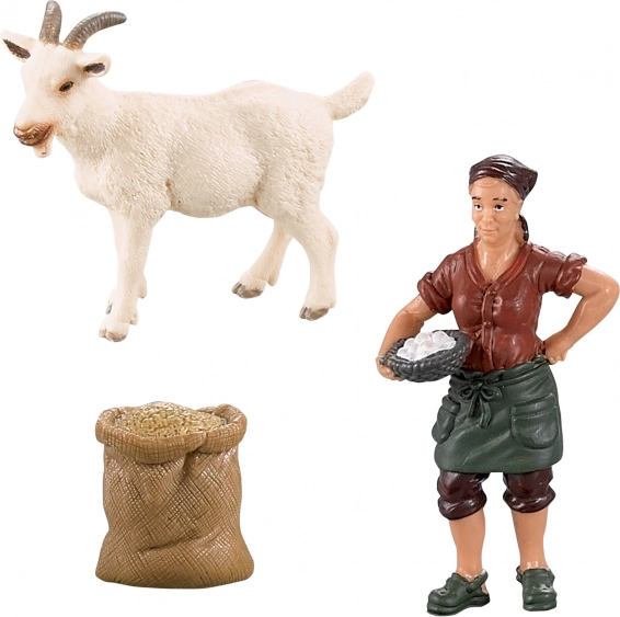 Koza, kozľa a farmárka tvoria harmonický celok, ideálny na vytváranie scén z farmy a učenie sa o chove zvierat.