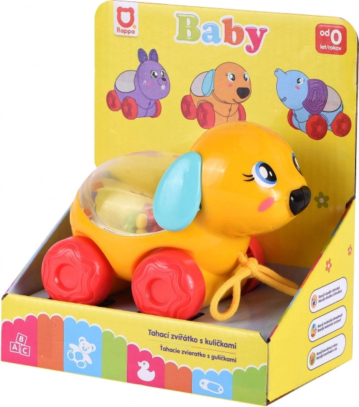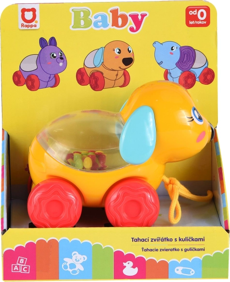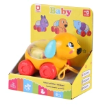 Veselé zvieratko v podobe psíka na kolieskach motivuje deti k chôdzi aj aktívnemu objavovaniu. Akonáhle sa hračka pohne, farebné guličky vo vnútri začnú poskakovať a vydávať jemné zvuky, ktoré deti zaujmú a podporia ich pozornosť.
