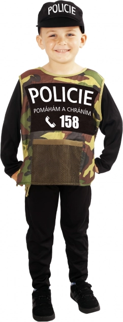 Premeňte vaše dieťa na skutočného hrdinu s kostýmom policajta, ktorý obsahuje čierny overal, maskáčovú vestu s nápisom POLÍCIA a čiapku. Ideálne pre deti od 4 do 6 rokov.