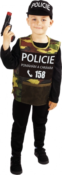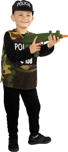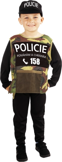 Tento realistický kostým policajta poteší na karnevale, maškarnom bále aj pri domácej hre na hrdinov. Ľahký čierny overal, maskáčová vesta s výrazným nápisom POLICIE a čiapka dodajú autentický vzhľad aj pohodlie po celý deň.