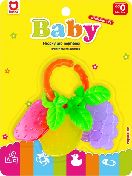 Hravá hrkálka/hryzadlo s ovocnými motívmi zaujme deti pestrými farbami a príjemnou textúrou, ktorá masíruje ďasná a pomáha pri prerezávaní zúbkov. Praktický tvar podporuje prirodzený úchop a rozvoj jemnej motoriky.