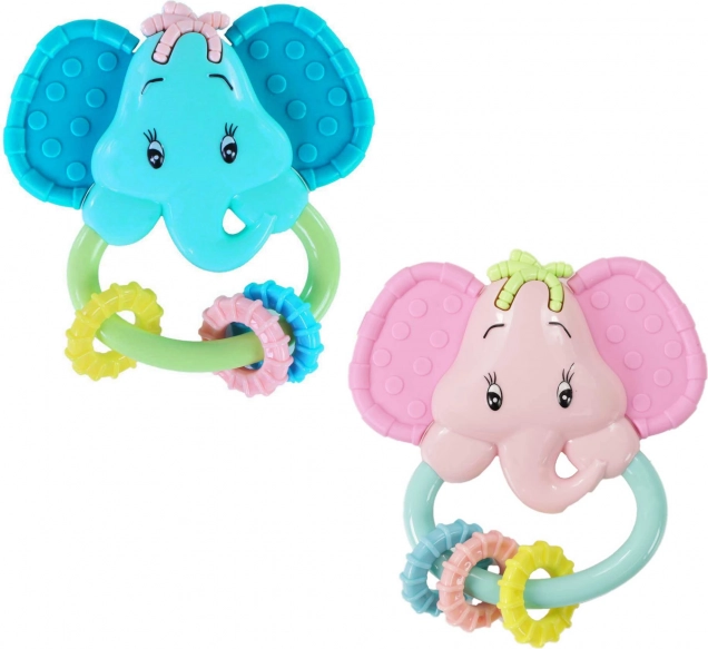 Táto farebná hrkálka/hryzátko v tvare slona je ideálna prvá hračka pre najmenších. Textúrované uši a krúžky prinášajú úľavu pri raste zúbkov, zatiaľ čo jemné hrkanie zabaví a rozvíja sluchové aj hmatové zručnosti.